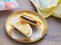 皿に盛られたぷにぷにん ぷにぷにしたマシュマロサンド