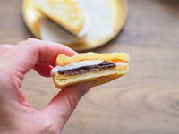 ぷにぷにん ぷにぷにしたマシュマロサンドを手で持った様子