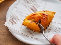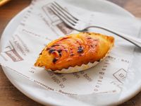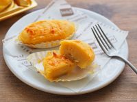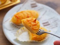 軽く焼いたクリーミースイートポテトをフォークでカットする様子