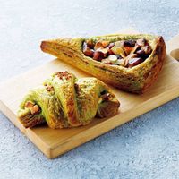 お皿のうえに抹茶のテリーヌがのって置いてある