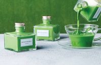 お皿に抹茶のババロア、白玉、あんこがのって置いてある