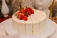 ラズベリーパンナコッタとストロベリー シャンパンゼリーとサンタ帽子のショコラロールケーキ