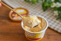 ローソン限定のハーゲンダッツ マイスイート 蜜いものタルトをスプーンですくっているところ