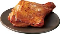 黒いお皿の上に「直火焼ローストチキンレッグ」がひとつのっている様子