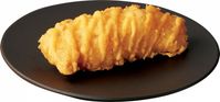黒いお皿の上に「クリスピーチキン(プレーン)」がひとつのっている様子