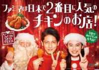 玉木宏さんとサンタクロース、サンタのコスプレをした女性が写っている、ファミリーマートのクリスマスチキンのキャンペーン画像
