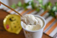 ファミリーマートのたべる牧場プレミアムのスプーンですくっているところ
