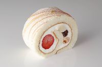 いちごのロールケーキがひと切れ置いてある