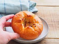 半分にカットして手に持ったマヌルパン