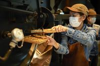コーヒー豆を焙煎している
