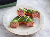 半分にカットした桜もちっとドーナツ宇治抹茶チョコ