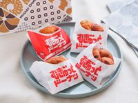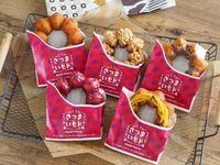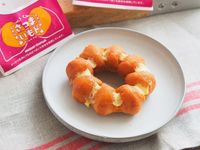 木の板の上に5種類並んだミスタードーナツのさつまいもド