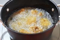フライドチキンを揚げているところ