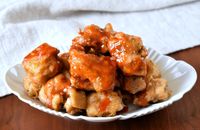 皿に盛ったヤンニョムチキン