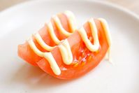 トマトにマヨネーズをのせている
