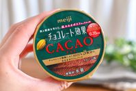 明治 チョコレート効果 CACAOアイスのパッケージを持っているところ
