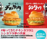 「#帰ってきたチキンタツタとシンタツタ 4月20日始動」キャンペーンの画像