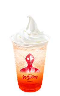 ウルトラマンの書かれたカップに入った「マックフィズR 熊本県産すいか」