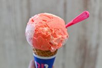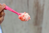 サーティワンアイスクリームのキャンディ アップルをスプーンですくっているところ