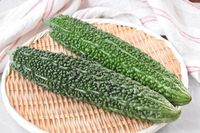 竹ざるにのせたゴーヤ2本