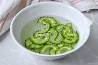 水を入れたボウルの中に入ったゴーヤ