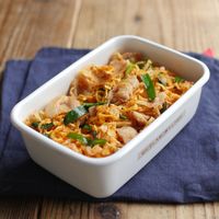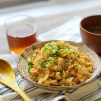 器に盛られた豚キムチ炊き込みご飯