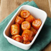 ホーロー容器に入ったちくわウインナーのナポリタン炒め