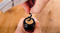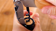 スクリューをコルクに差し込んでいる様子
