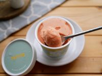 「TUTTO(トゥット)」のプラントベースクラフトジェラートブラッドオレンジをスプーンですくっている様子