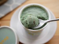 「TUTTO(トゥット)」のチョコミントジェラートをスプーンですくっているところ