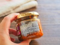 食べるナッツソースアジアンホット味の瓶を持つ様子