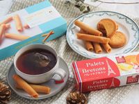 皿に盛られた二種のクッキーとコーヒーカップが並んだテーブル