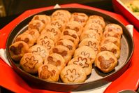 シェフ・ミッキーのフィナンシェに顔を描いているところ