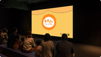 スクリーンに「中華まんミュージアム」の映像が映し出されている