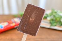 ソフト君 伝説のプレミアムチョコ(スティック)のパッケージを持っているところ