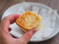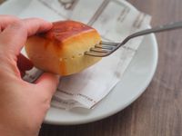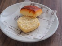 半分に割ったミルクパンにレモンカードを塗ったもの