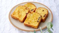 お皿の上に「 レーズンフレンチトースト」が4枚のっている