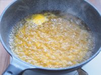 フライパンにチェダーチーズを入れた様子