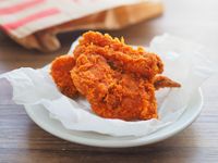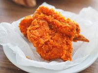 皿に盛られたガーリックホットチキン