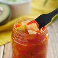 瓶に自家製サルサソースが入っている様子