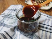 ガラスの瓶にお好みソースが入っている様子