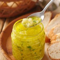 瓶にアヒージョソースが入っている様子