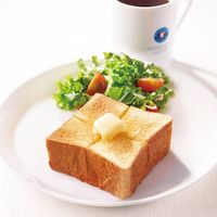 皿に盛られた厚切りトーストとサラダ