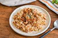 お皿にのったカルディコーヒーファームのオリジナル ビリヤニソース チキン・ダム