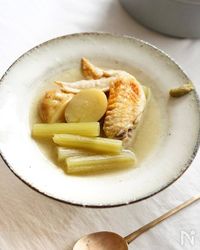 和風の皿に盛られた鶏手羽元と春キャベツの和風ポトフ