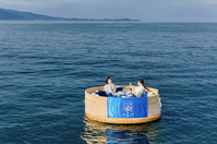 星野リゾート リゾナーレ熱海の「カラ桶」が海に浮かんでいる