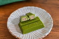 お皿にのった旧キットカット ミニ オトナの甘さ 濃い抹茶の断面
