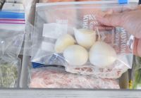 にんにくが入った保存袋を冷凍庫に入れるところ