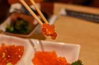 いくら醤油漬けを持ち上げているところ