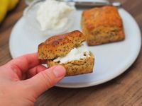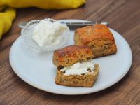 クリームチーズを挟んだミルクティービスケットを手で持つ様子